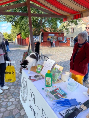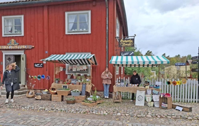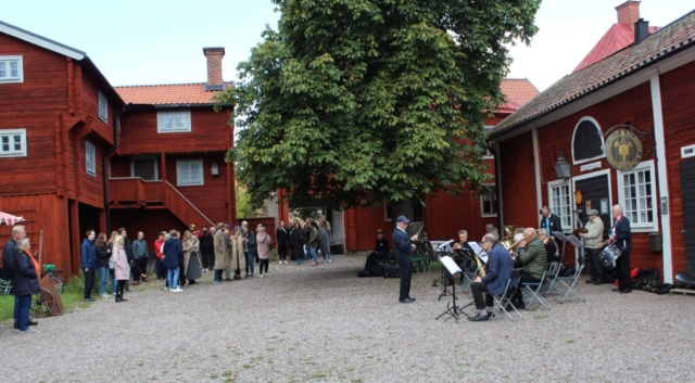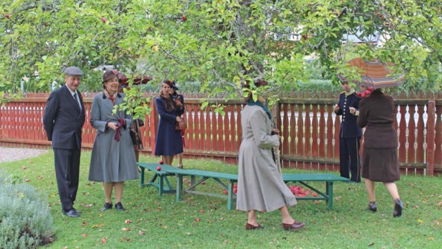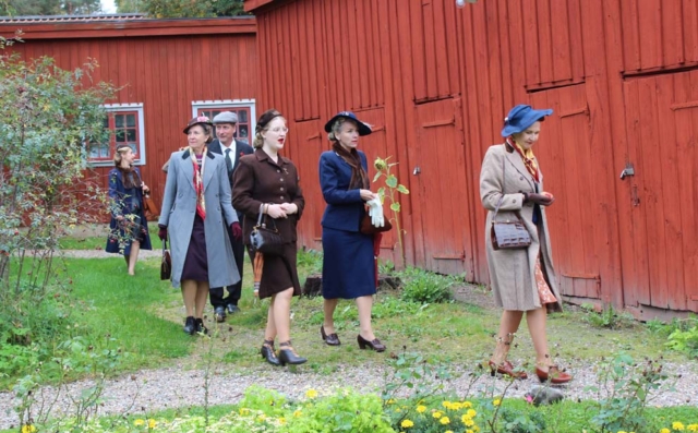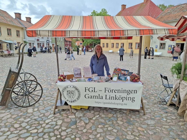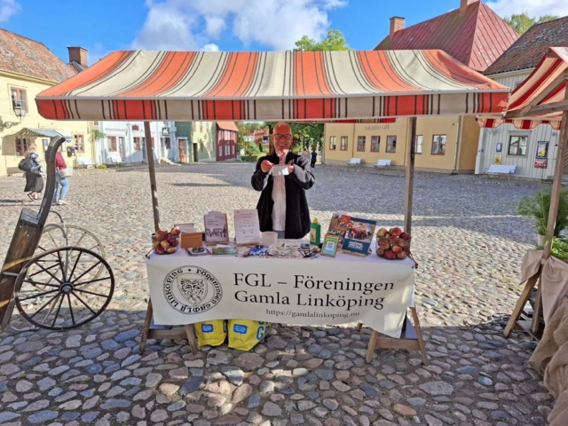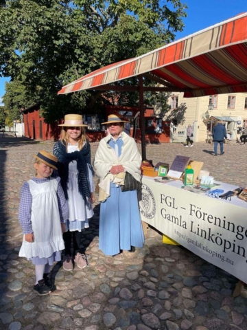 Trots det lite kylslagna vädret och en och annan regnskur kom det överraskande nog en hel del besökare till Äppelhelgen under lördagen den 28 söndagen den 29 september. FGL – Föreningen Gamla Linköping var naturligtvis där med sitt marknadsstånd. Vi bjöd på äpple av sorten Ingrid Marie och sålde lotter och böcker och försäljningen gick tämligen bra. Ett mycket uppskattat inslag var Bomans pojkar som spelade marschmusik i cirka en timmes tid. Publiken strömmade till med och det var idel leenden på läpparna bland åskådarna. Föreningens klädgrupp, under ledning av Anna Wallenius, hade organiserat ett besök av Vintagevänner från Skåne, Västergötland, Småland, Södermanland och Östergötland. De träffades i Gamla Linköping under Äppelhelgen i sina fantastiska kläder och mode från 1940-talet. Ett mycket uppskattat inslag och medlemmarna i gruppen blev flitigt fotograferade. Många besökare uttryckte sin beundran över både kläder och accessoarer och hur elegant 1940-talets mode var. Vi hoppas på ett fortsatt samarbete och flera besök av gruppen i framtiden. Här nedan följer ett urval av bilder från Äppelhelgen.