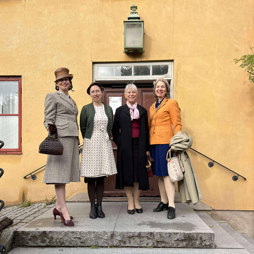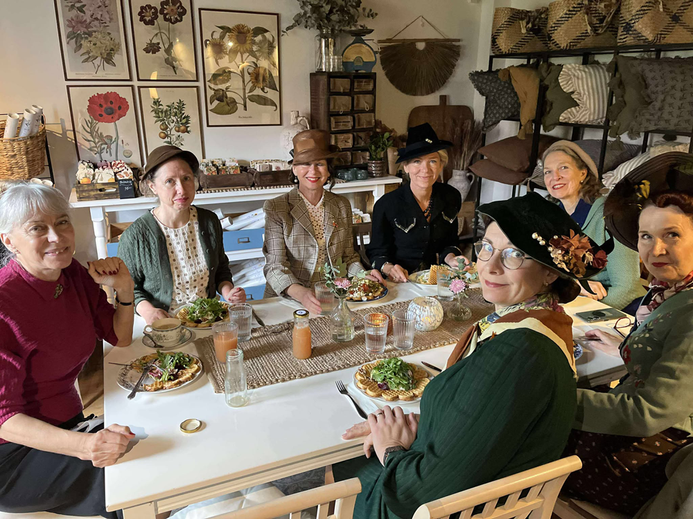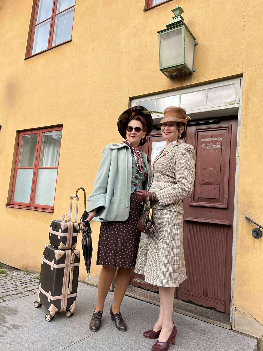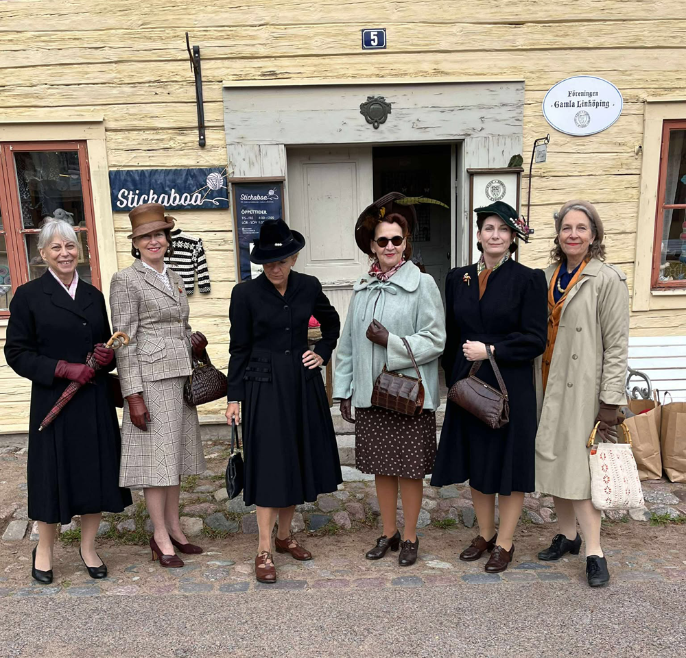 Den 4 och 5 oktober samlades ett sällskap vintageintresserade med fokus på 40-talsmode i Gamla Linköping efter inbjudan från Anna Wallenius, ansvarig för vår Klädgrupp. Gästerna kom från Malmö, Göteborg och Stockholm och de bodde på Hilma Winblads B&B i Gamla Linköping. De flanerade runt bland gator och gränder, besökte butikerna samt Dahlbergs Café och Våffelstugan. Inslaget uppskattades mycket bland övriga besökare som fotograferade flitigt. Här nedan några bilder från besöket.