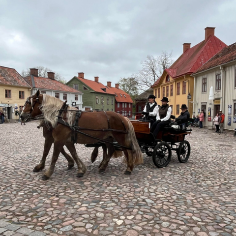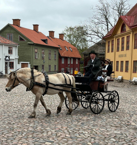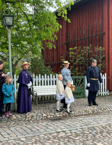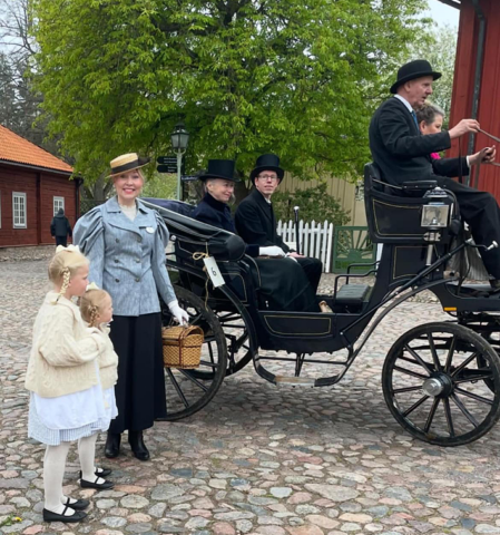 En återkommande aktivitet i Gamla Linköping är den årliga vagnparaden. Klädgruppen var med och förgyllde den traditionsenliga vagnparaden på Kristi himmelsfärd den 9 maj. Klädda i tidsenliga kläder åkte klädgruppen med i vagnarna från Westmanska Vagnmuseet. Vagnparaden utgick från Valla gård och man körde ekipagen 1 -2 ggr i stadskvarteren i Gamla Linköping och sedan tillbaka till Valla gård. Nytt för i år var samarbetet mellan klädgruppen och Westmanska Vagnmuseet. Ett mycket uppskattat och roligt samarbete som förhoppningsvis kan bli tradition? Foto: FGL – Föreningen Gamla Linköping.